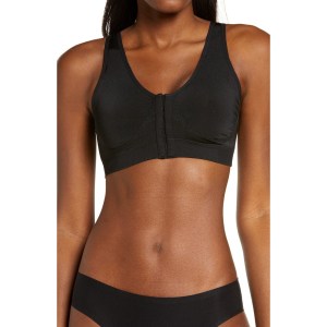 Image Credit: Cosabella If you feel like dressing up post-op, Cosabella’s racerback bralette will put a smile on your face. The bra “is designed for post-surgical reconstruction, mastectomy, and augmentation.” The design features scalloped lace throughout the bra and a front closure with soft breast form pockets that also allow for a drainage opening.