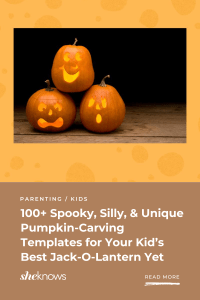 Image Credit: SheKnows Design This template is great if your kiddos aren’t great at making straight lines. This more free-form face is very forgiving of any carving mistakes your kid might make.